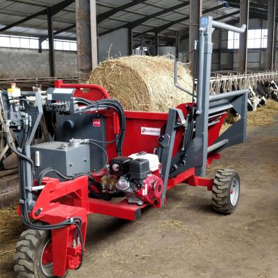 - L’agressivité du rouleau démêleur permet de dérouler tous types de balles rondes, même les plus difficiles comme la luzerne, l’herbe enrubannée, le chanvre, le sorgho, la fougère…